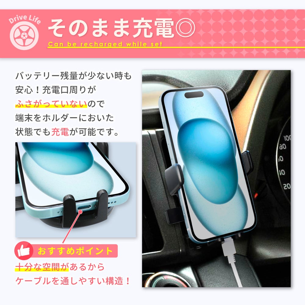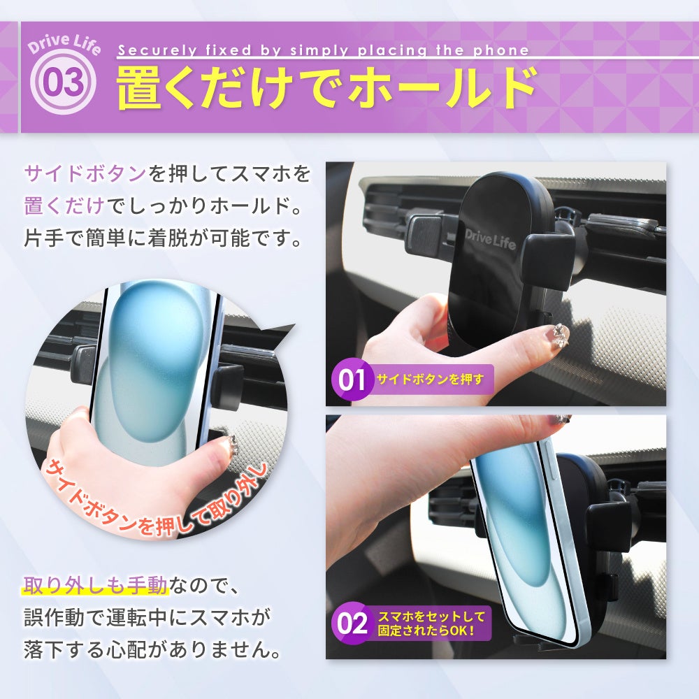・サイドボタンを押してスマホを置くだけでしっかりホールド!