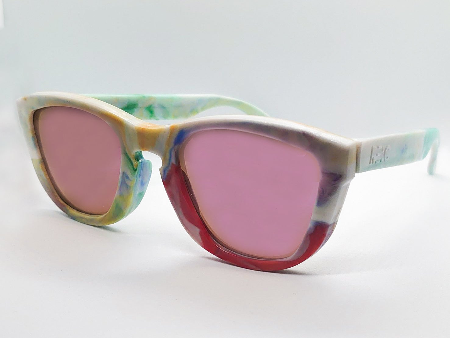 製造には、オランダ発のオープンソース「Precious Plastic」を活用しています。廃プラスチック素材から生まれるサングラスは、カラーや形状を自由にカスタマイズ可能で、ファッションとしての魅力だけでなく、万が一壊れても何度でも再生可能な循環型(サーキュラーエコノミー)の仕組みを備えています。