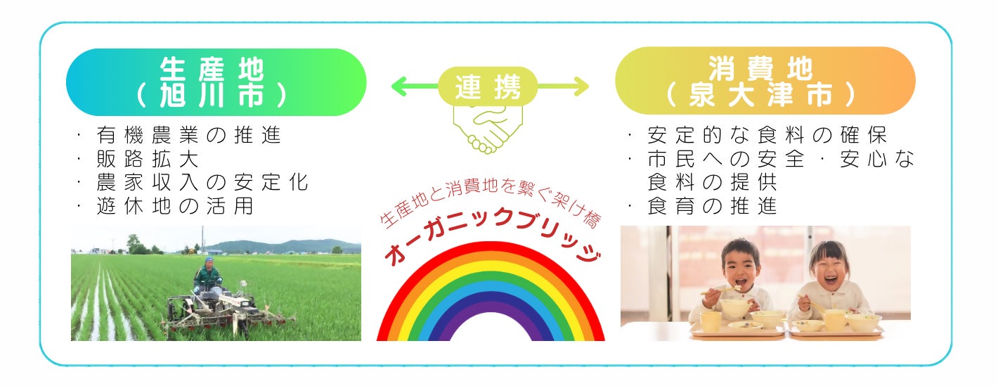令和6年7月に北海道旭川市と、全国初の「生産地」と「消費地」の2者間によるオーガニックビレッジ宣言を実施。今後、生産地と消費地を繋ぐ「オーガニックブリッジ」を実現し、双方にとっての地域課題の解決が図られるような共存共生の関係性を構築しながら、「人」や「環境」に配慮した有機農業を推進し、持続可能な農業の発展を目指していく。