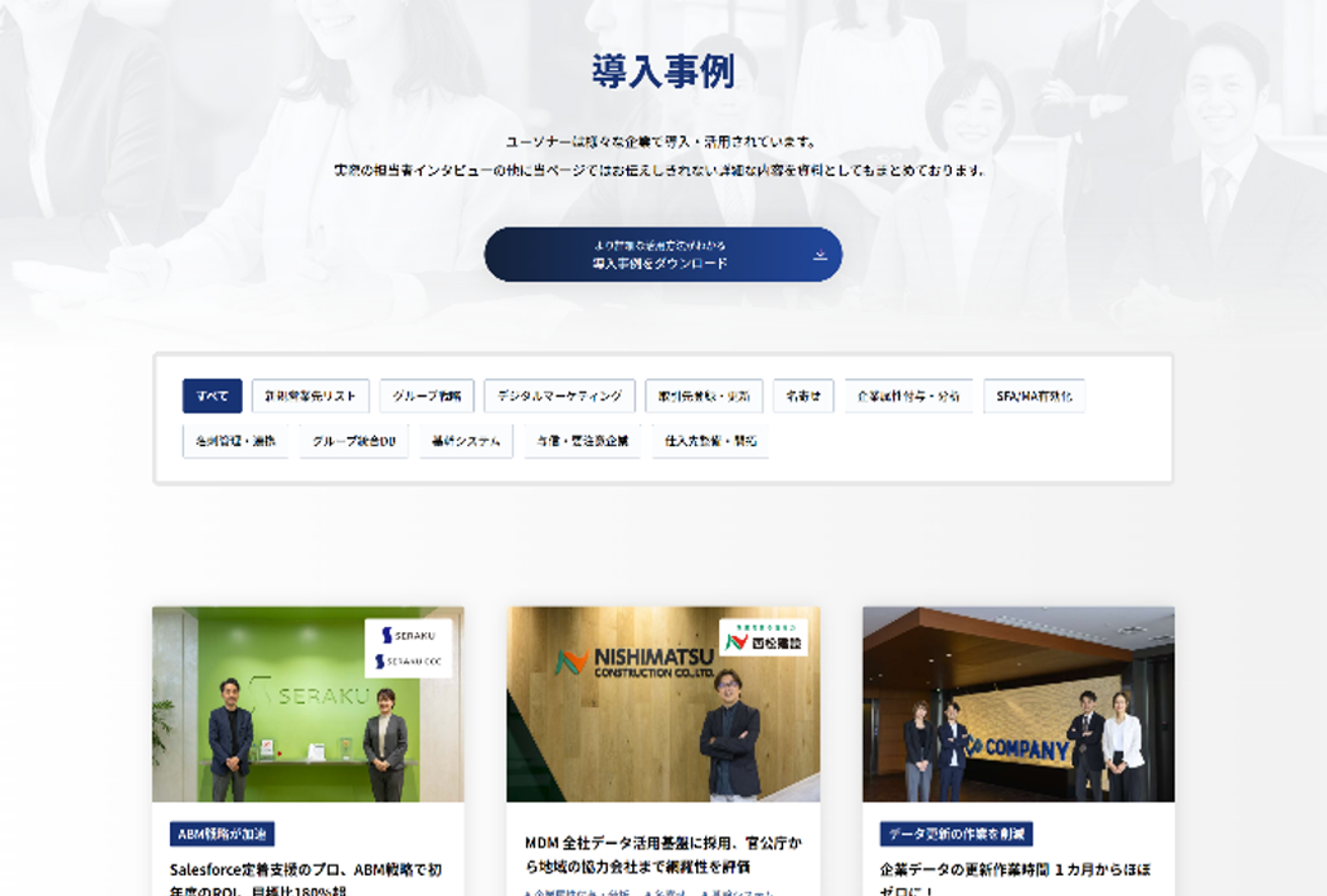 リニューアルして見やすくなった当社サイトの導入事例ページ