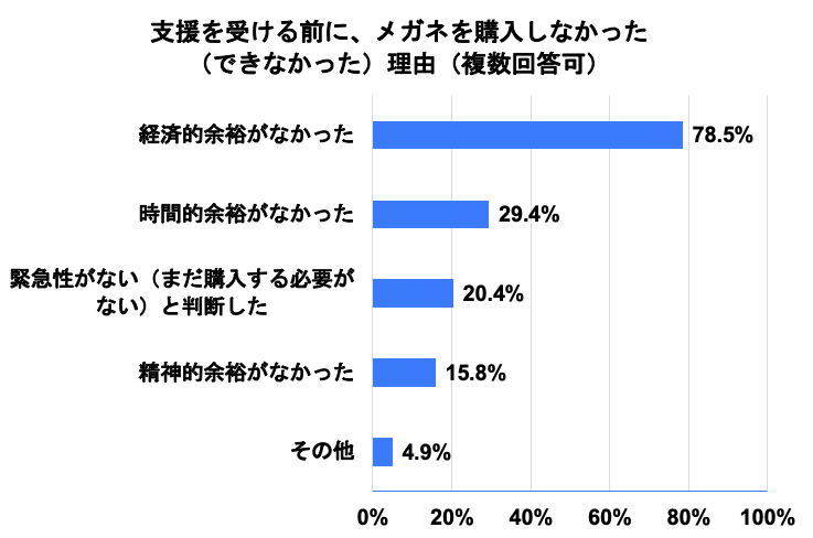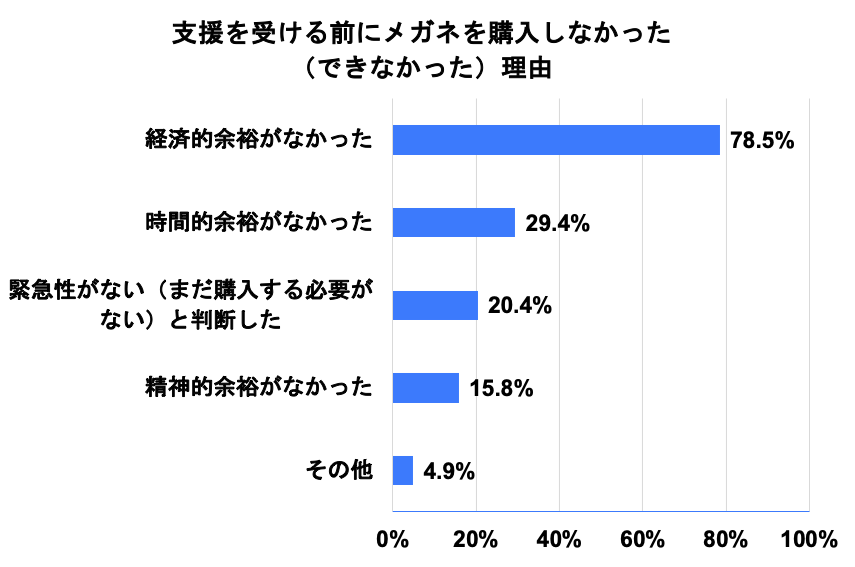 - 「子どもが眼鏡を買うお金がうちにはないだろうと思い、眼鏡が必要なことを黙っていた。実際知っていても経済的に余裕がなく無理だった」