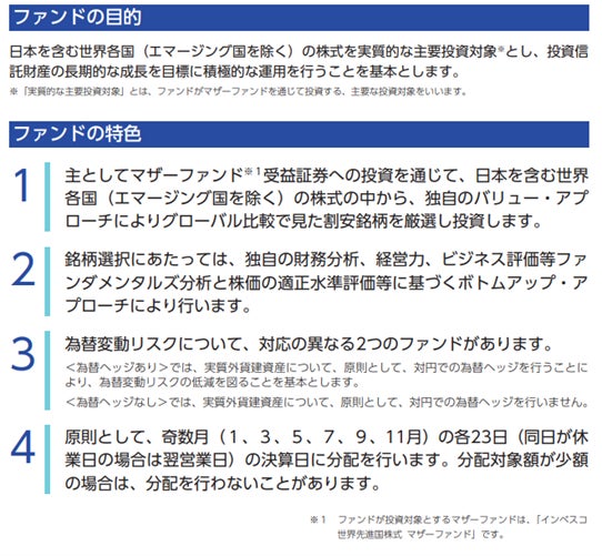 「インベスコ 世界厳選株式オープン<為替ヘッジあり>(奇数月決算型)/<為替ヘッジなし>(奇数月決算型)」(愛称:世界のベスト)について