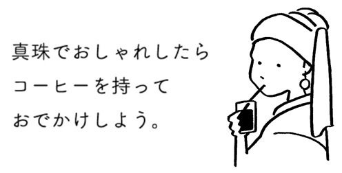 今回のコラボレーションでは、コーヒーが絶妙にMIXされた、シンプルでユーモアのあるドローイングが人気のイラストレーターCOFFEE BOY(コーヒーボーイ)さんのイラストを採用。あの絵画がかわいくなってマイボトルに。ほっと一息つきたい場面にも馴染むデザインになっています。