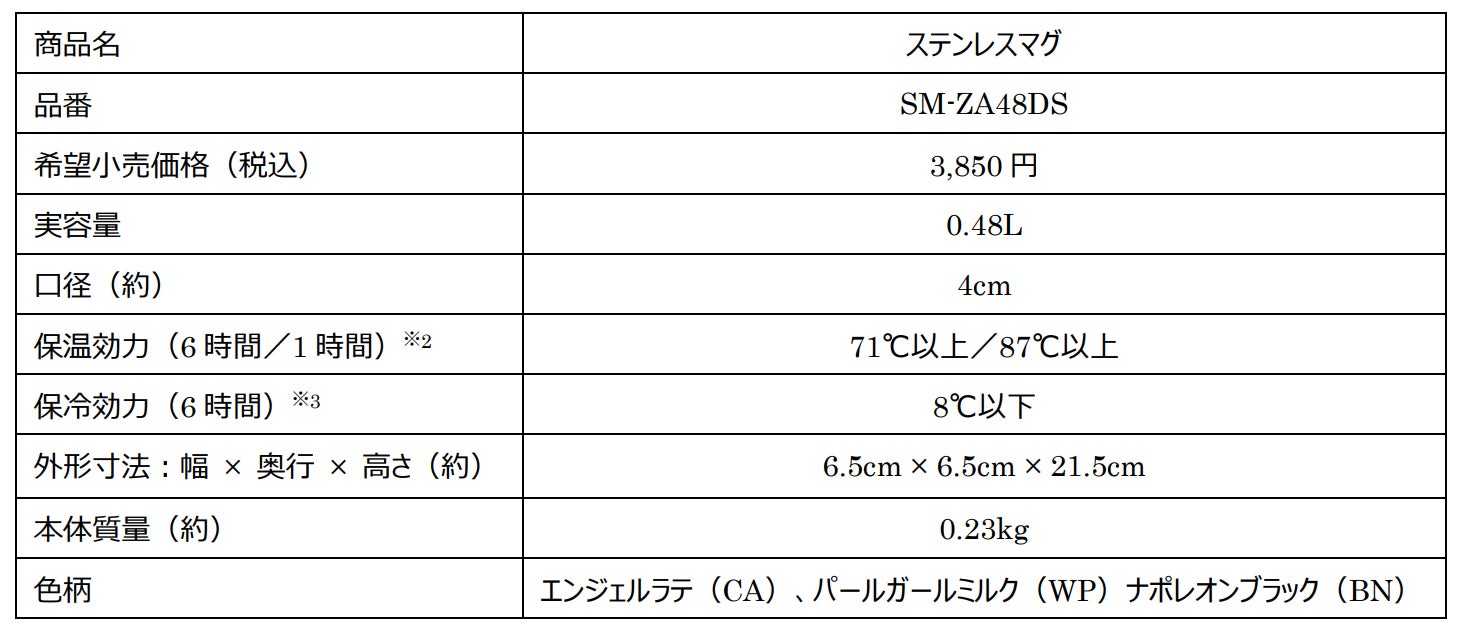 ※3 保冷効力とは、室温20℃±2℃において、製品に冷水を取扱説明書に記載の位置まで満たし、縦置きにした状態で水の温度が 4℃±1℃のときから6時間放置した場合におけるその水の温度。