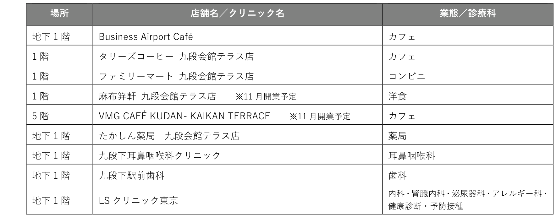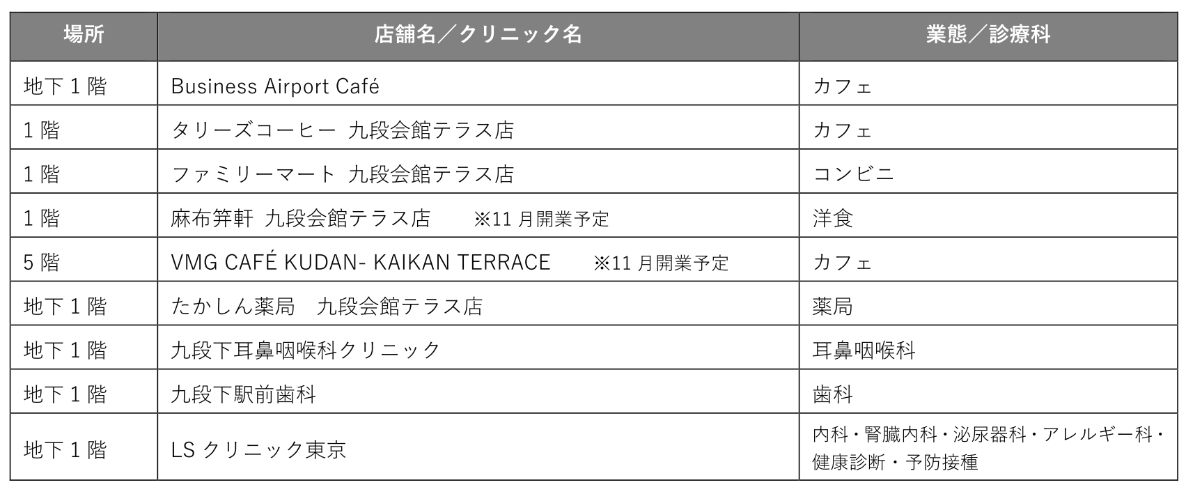 ■「九段会館テラス」フロアガイド/店舗・クリニック一覧