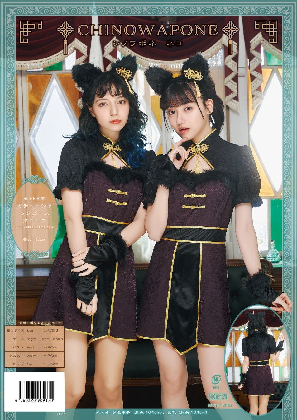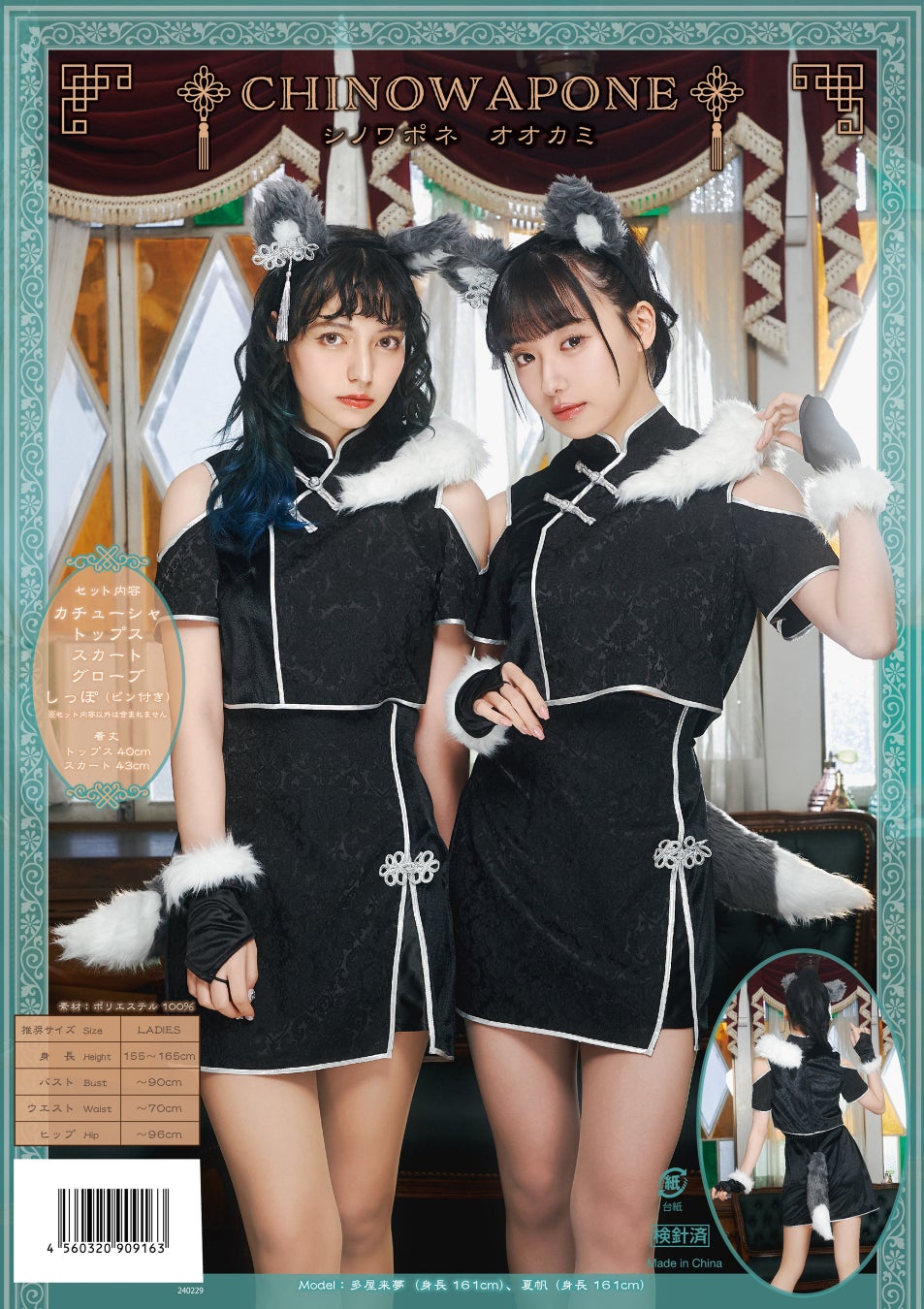 シノワポネシリーズは、シノワズリなチャイナドレスに和風のケモミミ&しっぽをプラスしたデザインが特徴的。チャイナドレスの丈感やシルエットにこだわり、コスプレ初心者でも着こなしやすいバランスになっています。