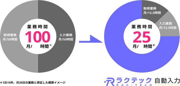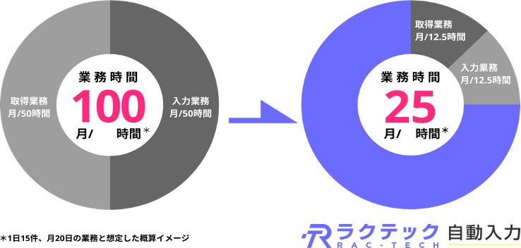 その課題解決に向けて、当社の強みであるDXによって、関わる全ての人々の生活・ビジネスを向上に導くため、『ラクテック シリーズ』の構築に取り組んでおり、リテックラース独自のシステム構築により完成された「ラクテック 自動入力」は、圧倒的な業務削減を実現いたします。