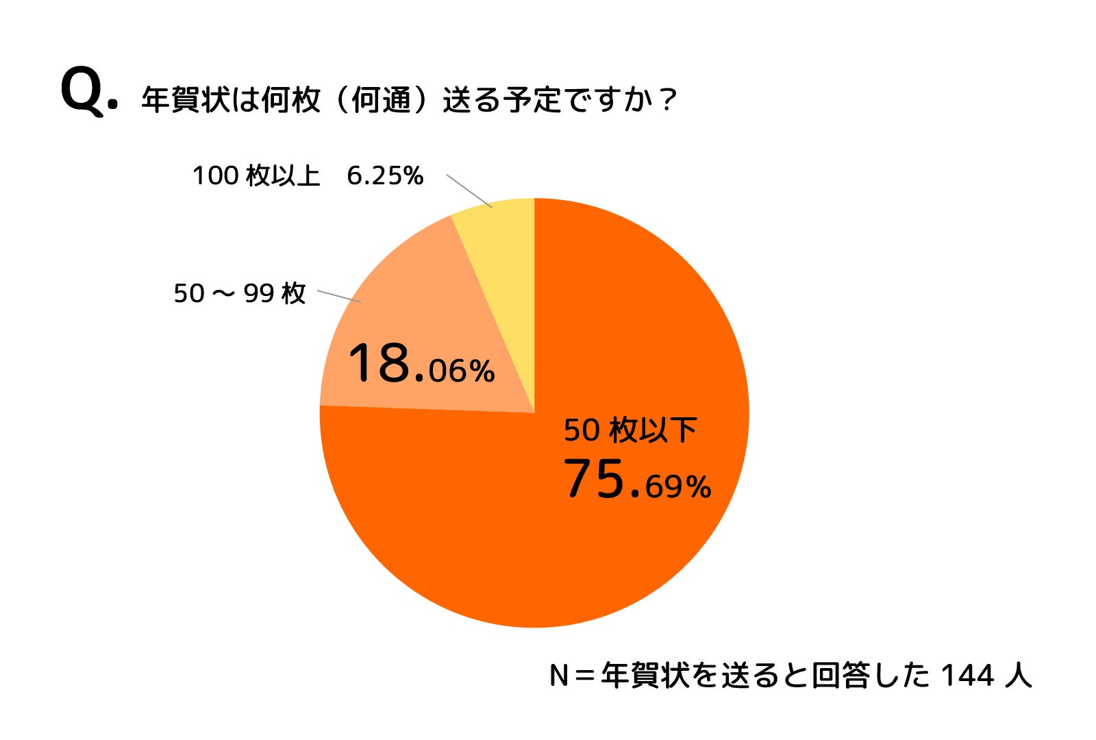 1.保護者の8割がハガキで年賀状を送付、送付枚数は50枚以下が75%
