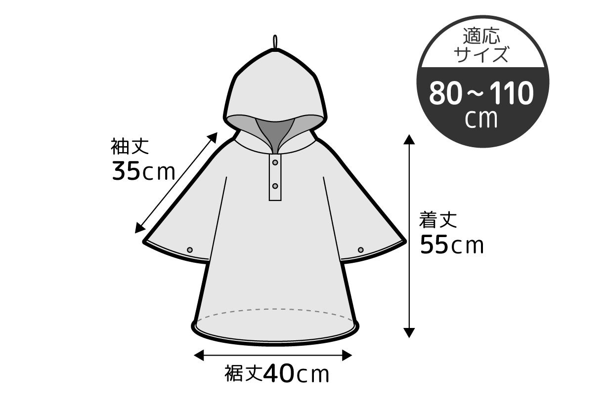 フード上部のループを掴んで上から子どもにかぶせるだけで着衣完了。雨の中でも動き回るお子さんを追いかける時間が短縮されます。