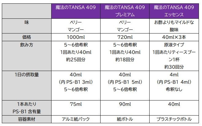 「魔法のTANSA 409シリーズ」製品概要(全3タイプ)