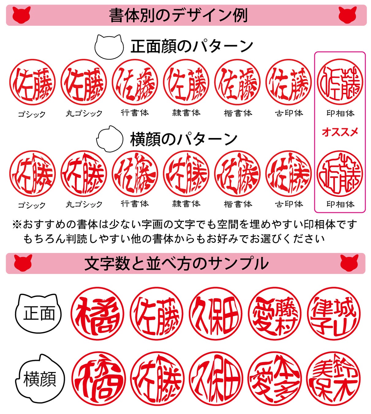 そのため、書体を選ばず自然な形でお名前の判読性と猫顔の形を融合することが可能となりました。