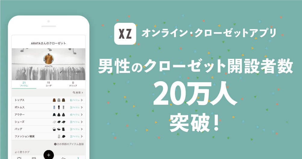 持ち歩けるオンライン・クローゼットアプリ「XZ(クローゼット)」で手持ち服を見える化 男性のクローゼット開設者数が“20万人”を突破