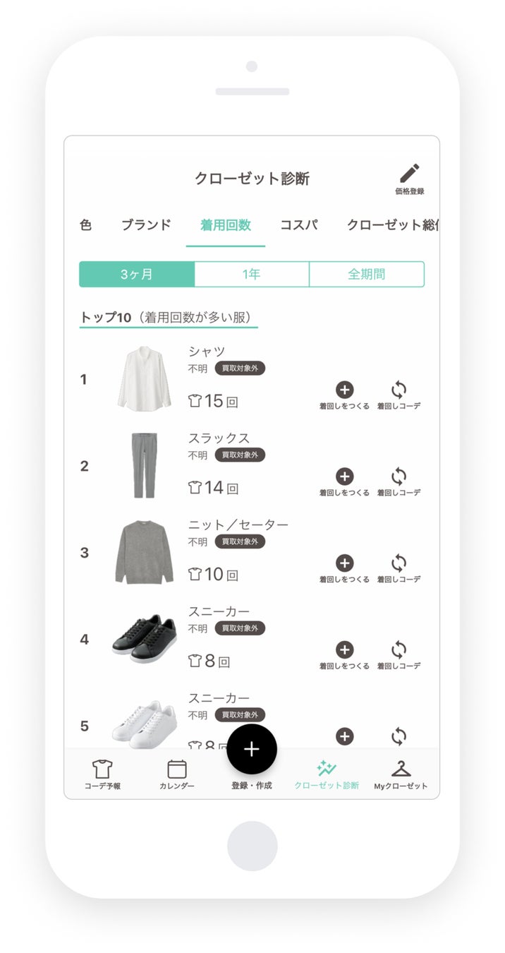 ④手持ち服の活躍状況を振り返る「クローゼット診断機能」