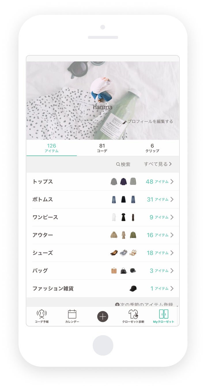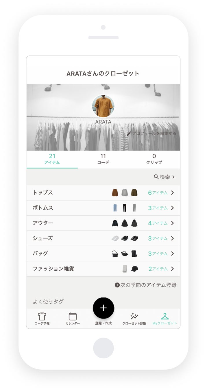 気に入ったコーディネートはそのままカレンダーに記録したり、アイテムを組み替えて保存することができます。今日着た服を記録することで、いつ・どんなコーディネートを着用したか確認できることはもちろん、アイテムの着用回数をカウントすることができます。
