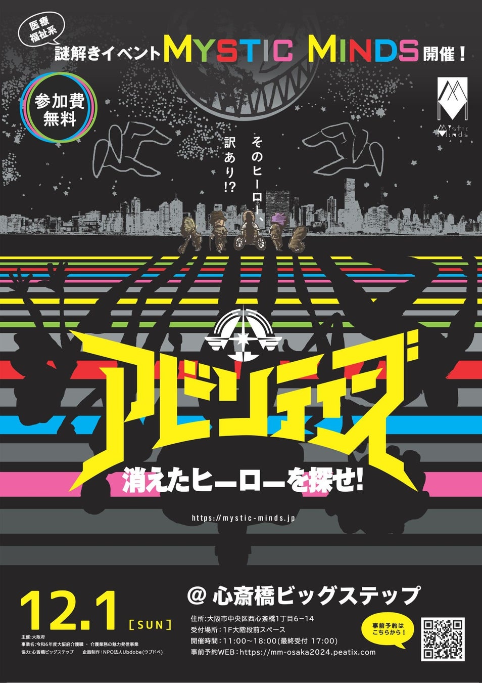 全国各地で盛況をおさめてきた福祉系謎解きイベントMystic Mindsを、大阪府主催で12月1日(日)心斎橋ビッグステップで開催します。