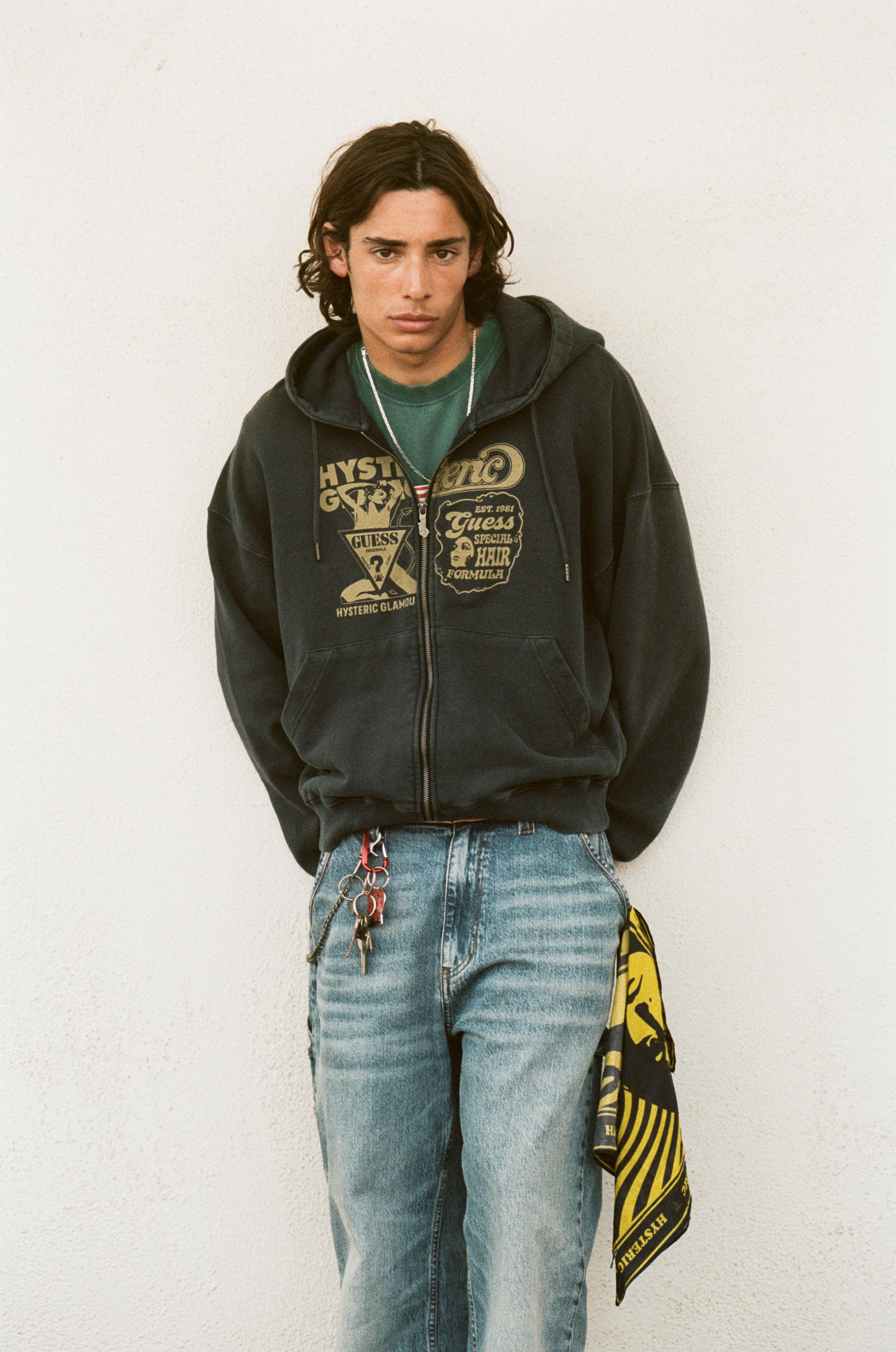 GUESS JEANSは、Chief New Business Development Officer ニコライ・マルシアーノのもと、HYSTERIC GLAMOURとの新たなコラボレーションを発表いたします。本パートナーシップは、グローバルデニム、ユースカルチャー、そしてカウンターカルチャーデザインを牽引してきた両ブランドによる、力強く創造的な対話を象徴するものです。