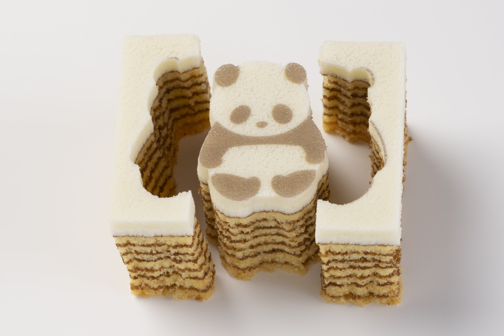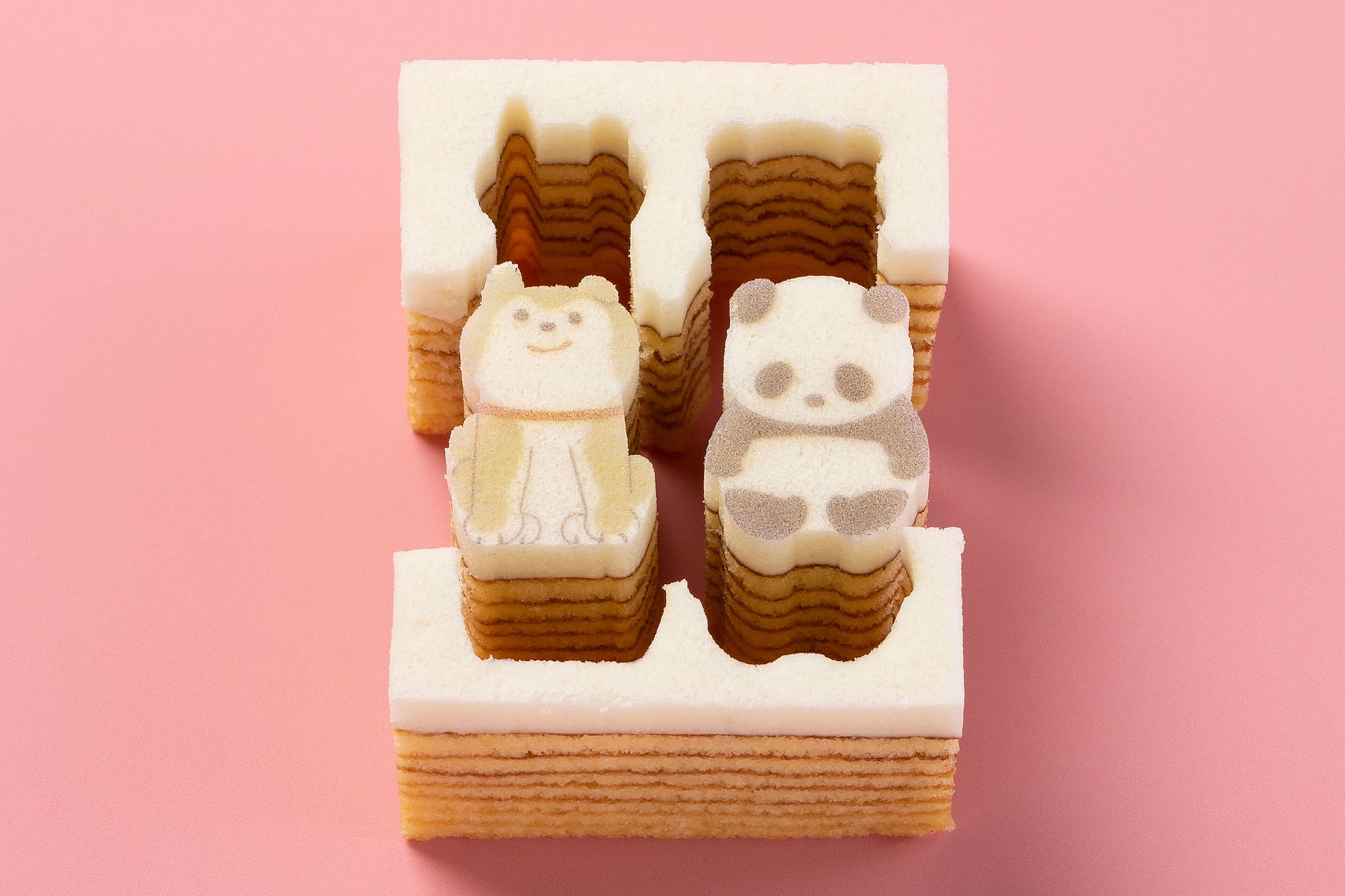 - 渋谷の名所ハチ公像をモチーフに、子パンダとならんだ「しぶハチ」の型ぬきバウム。