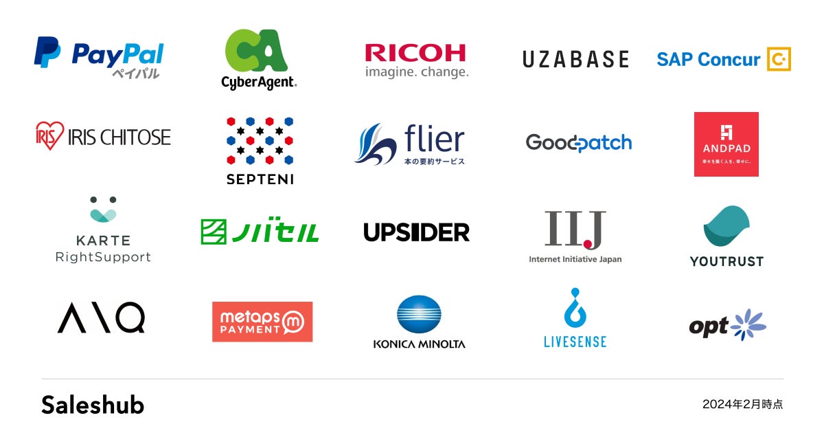 Saleshubは国内の急成長スタートアップから大手上場企業まで、国外の幅広い業界で新規開拓営業の新たな手法のひとつとして選ばれています。
