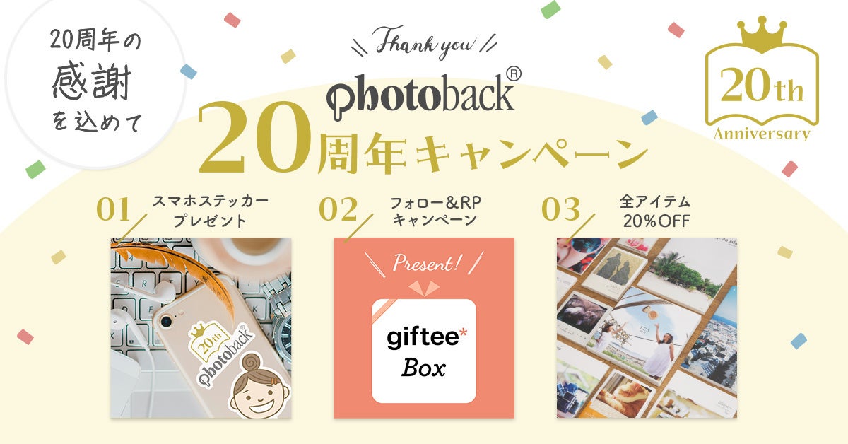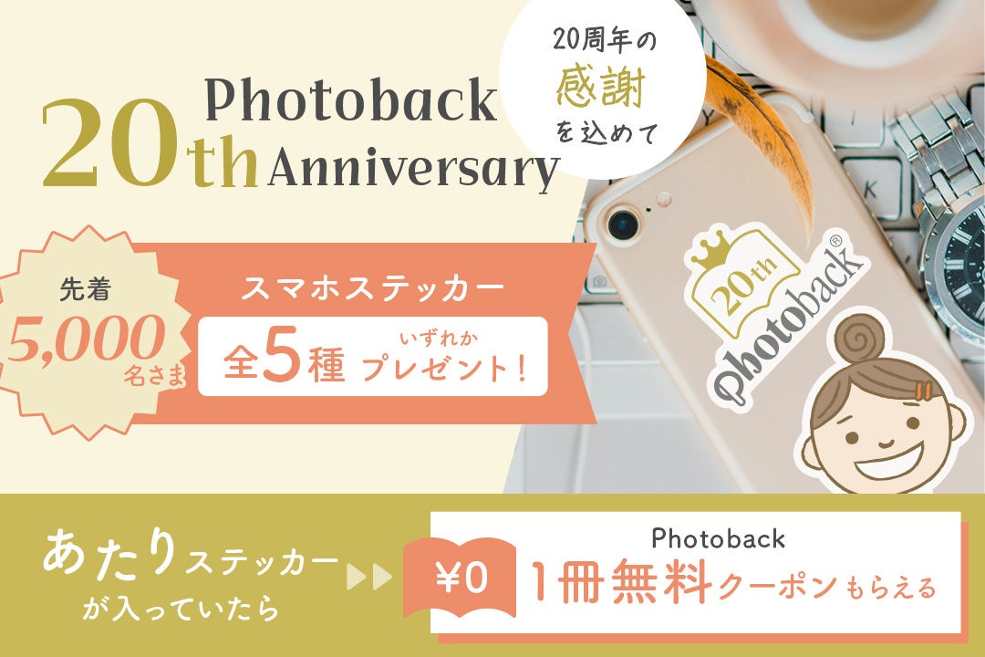 【Photoback20周年キャンペーン】第一弾は全アイテム20%OFFや先着ステッカープレゼント、Xキャンペーンも