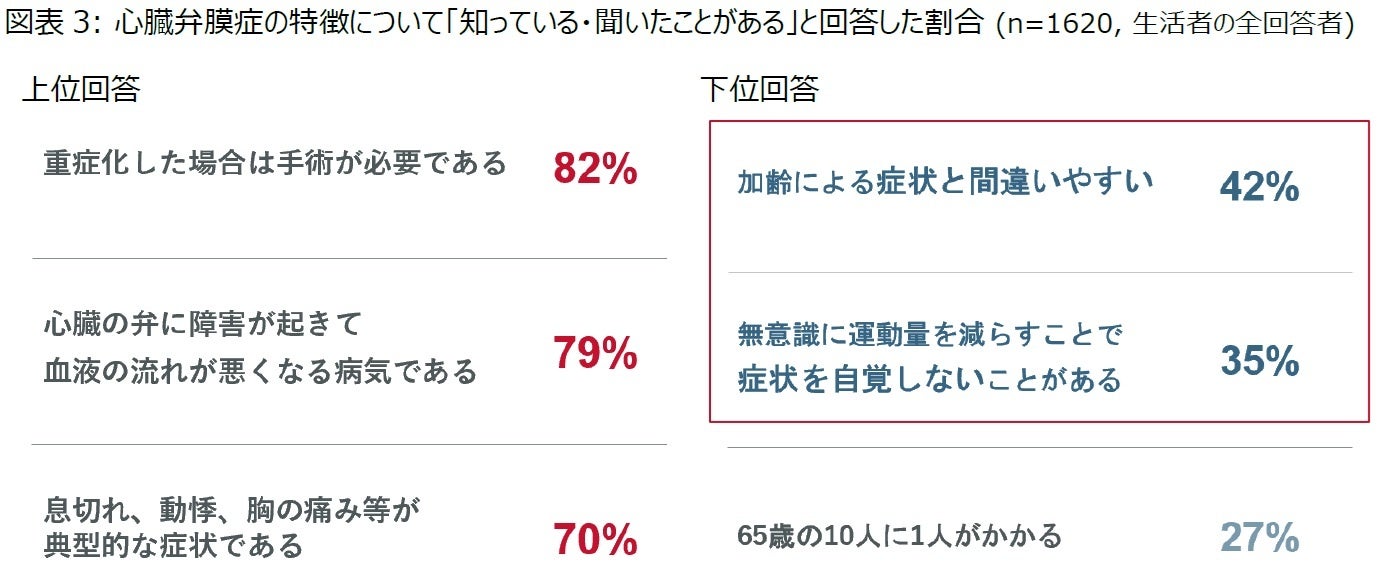 疾患名は浸透しているものの、心臓弁膜症は「自覚しにくい症状」を特徴とすることについては、十分に理解されていない実態が浮き彫りとなりました。