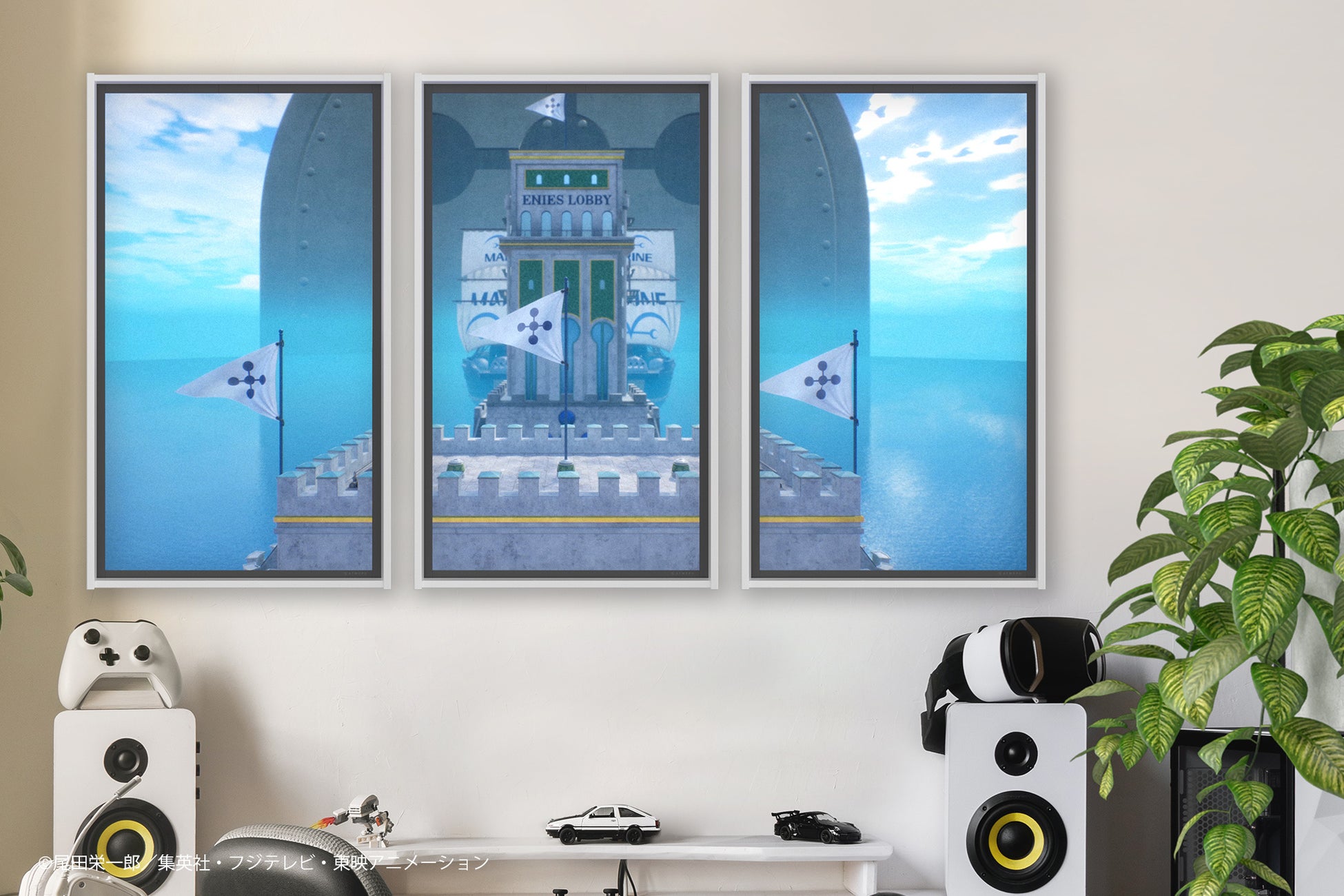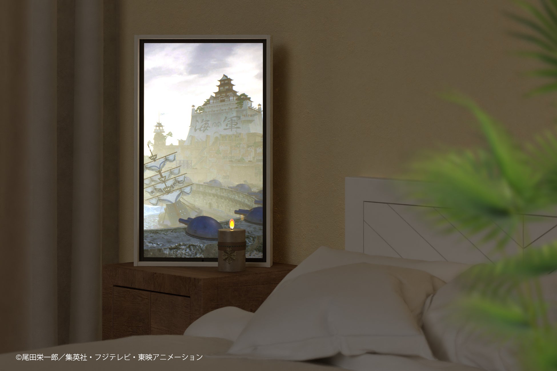 風景は、ある一点のポイントから定点撮影をした動画です。『ONE PIECE』の世界に入り込んだかのような没入感を味わうことができるよう、目線の高さや構図まで細部まで計算して撮影されました。窓の向こう側には、美しい水の都「ウォーターセブン」で生活を営む人々から、「エニエス・ロビー」の背後に堂々と佇む巨大な「正義の門」まで、漫画で描かれたあの島々が目の前にリアルに蘇ります。さらにAtmoph Windowを2台、3台とつなげてパノラマにすると、より臨場感の溢れるひとつなぎの風景を楽しむことができます。