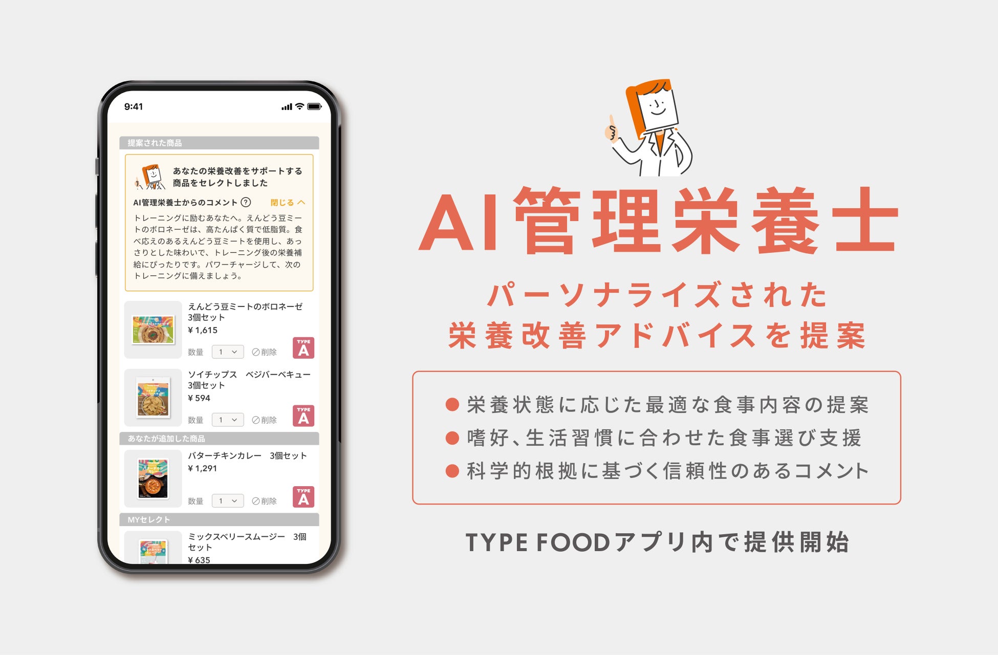 株式会社ユカシカドは、2025年3月31日、同社が展開するTYPE FOODアプリ内にて、栄養検査結果やカウンセリングデータをもとに個別最適な栄養改善アドバイスを行う「AI管理栄養士」機能の提供を開始します。