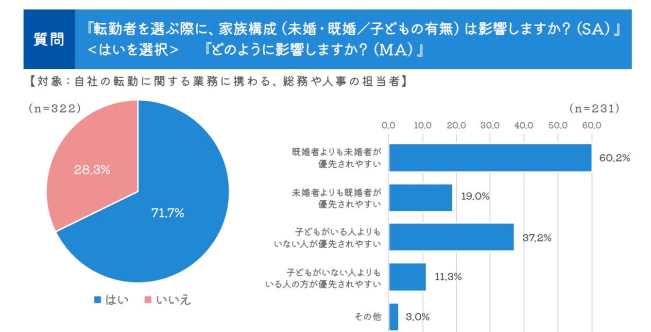 転勤者を選ぶ際に家族構成は影響しているか?という点では71.7%の担当者が影響していると
