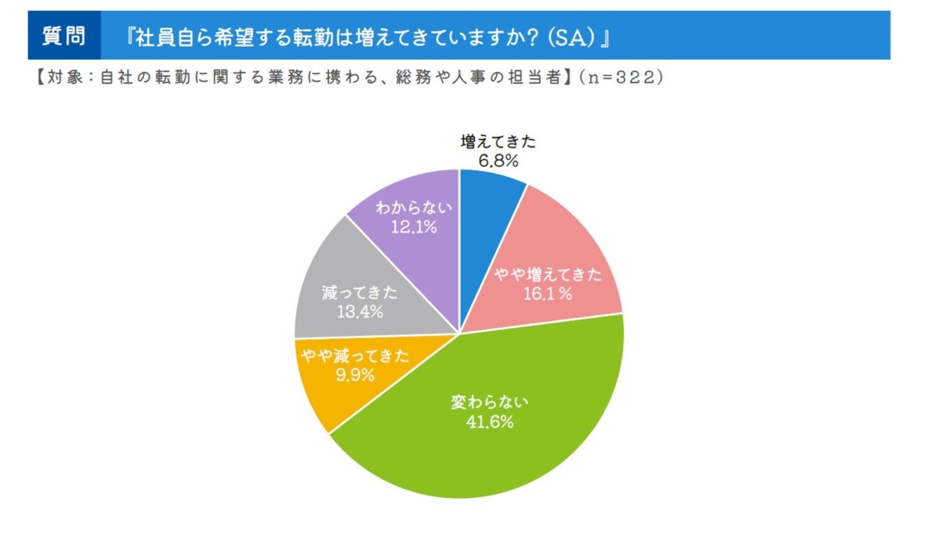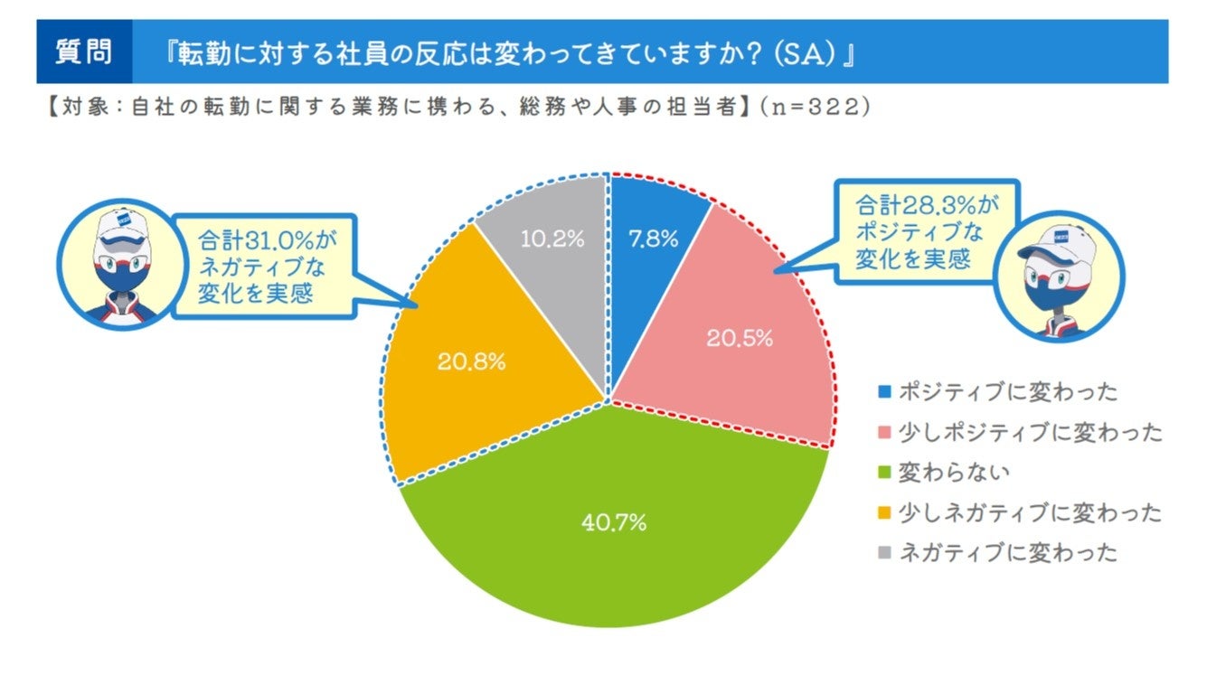 多く、次いで「やや増えてきた」(16.1%)。転勤をポジティブにとらえる傾向を考慮すると、自ら転勤を