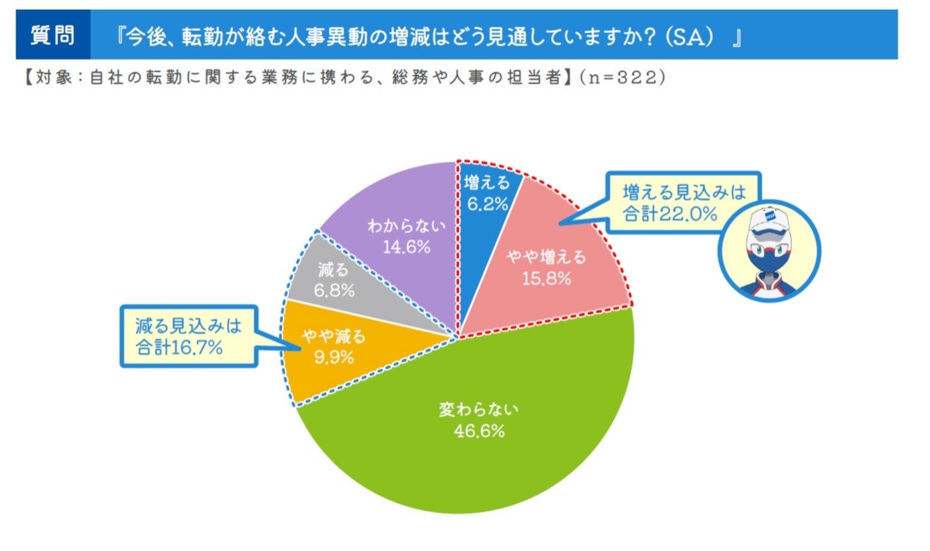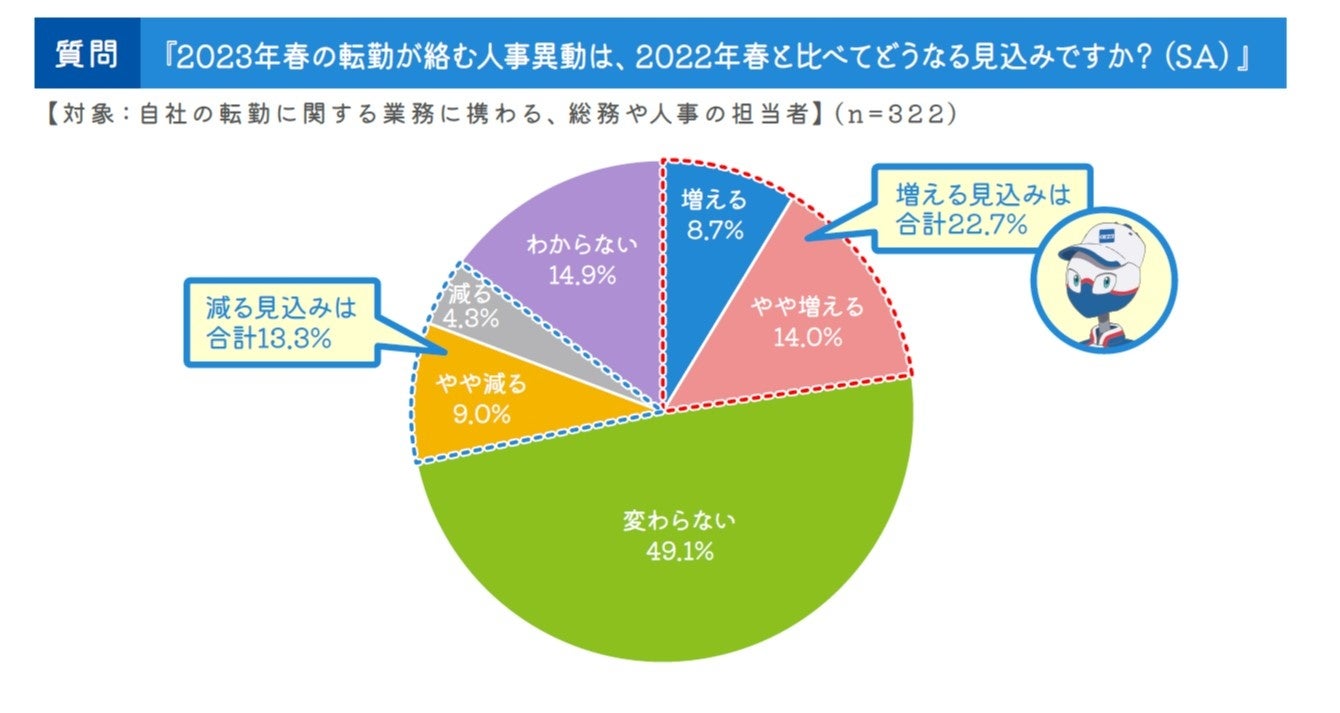 2023年春の転勤者数は2022年春と比べて49.1%が「変わらない」と回答。増えるとした人は