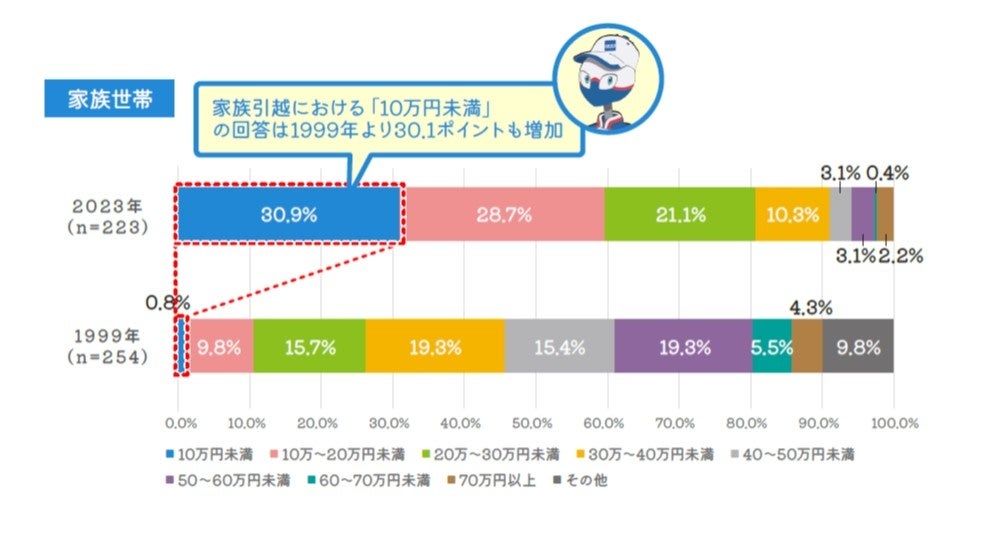 ※1999年発表の調査では単身引越費用平均額約16.9万円 / 家族引越費用平均額約41.3万円