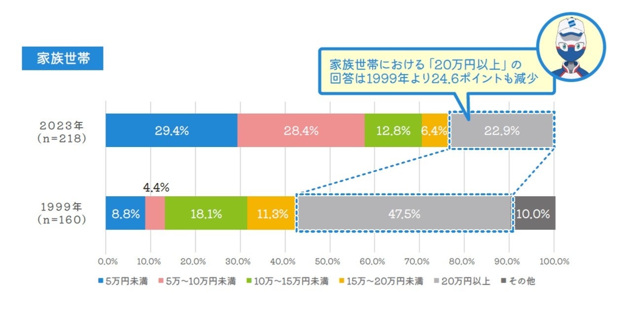 なおどちらの平均額も、1999年発表の調査時の平均額よりも金額が下がっています。