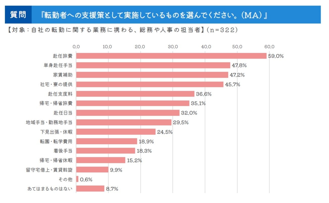 (59.0%)。次いで「単身赴任手当」(47.8%)、「家賃補助」(47.2%)、「社宅・寮の提供」