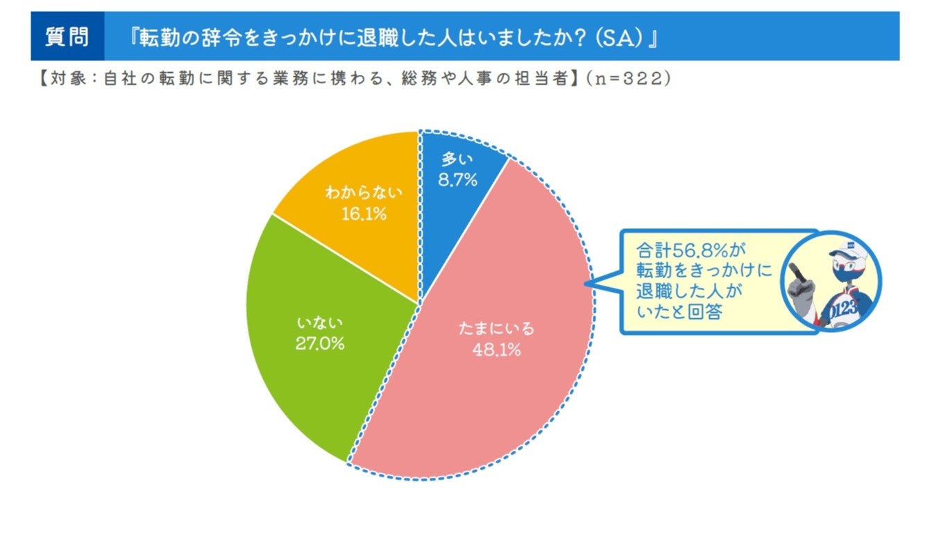 56.8%と半数以上が転勤をきっかけに退職した人がいたという結果になりました。