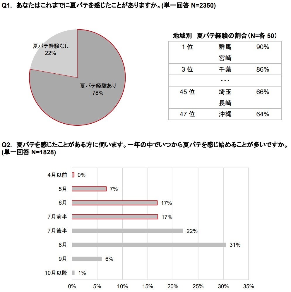■ 夏バテの経験8割 1位群馬・宮崎は9割 夏前から4割がバテている? 早期化の原因は生活習慣
