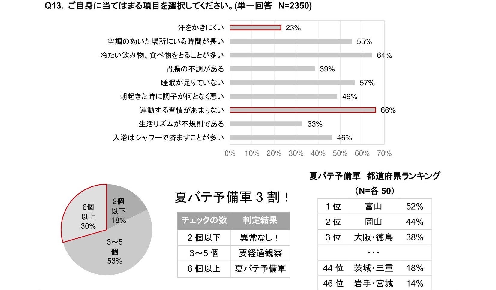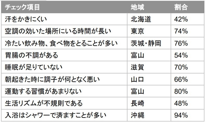 久手堅先生監修 夏バテチェックリスト 夏バテ予備軍3割、最も多い地域は富山