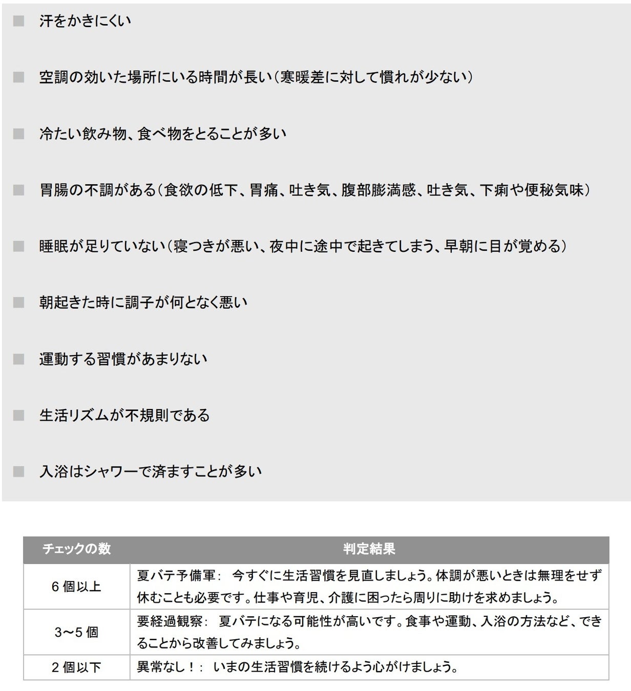 久手堅先生監修 夏バテチェックリスト あなたの夏バテ危険度は?