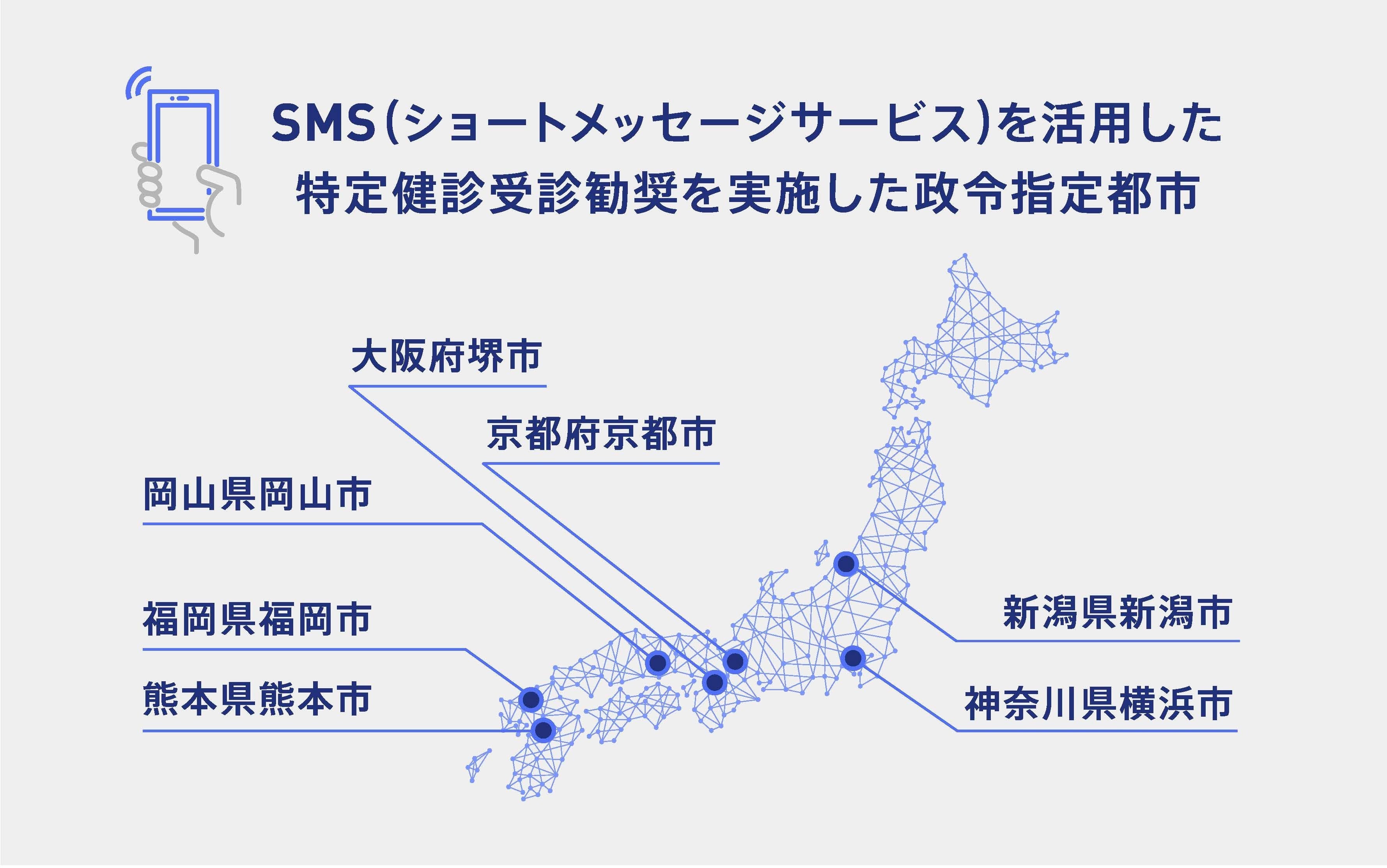 横浜市、福岡市などの政令指定都市をはじめ、SMS(ショートメッセージサービス)による特定健診への受診勧奨を実施しました。