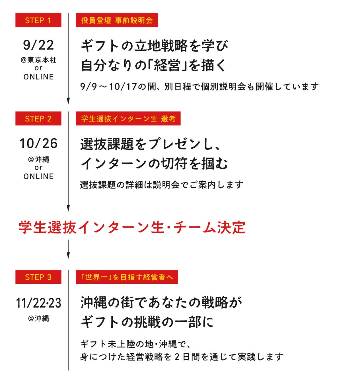 同賞は、学生の社会的・職業的自立に貢献したインターンシップやキャリア形成支援に関わる取り組みを表彰するもの。パラドックスは、ギフトHDの「シアワセを、自分から」という理念を体現する場として、学生が沖縄でラーメン店をゼロから立ち上げる「沖縄開拓インターン」の企画・設計・集客・運営を支援。同賞において、学生のキャリア形成に資するプログラムとして高く評価されました。これを受け、28卒学生向けには9月および11月に、規模と内容を拡大して開催することが決定いたしました。