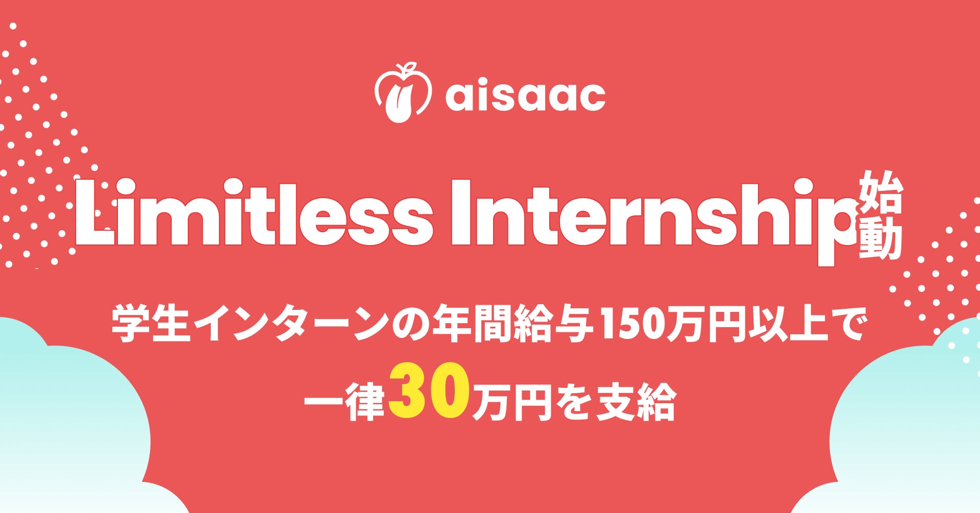 「年収の壁」を超え、学生とスタートアップの「成長の壁」を破壊せよ!アイザックが学生インターンの年間給与150万円以上で一律30万円を支給する「Limitless Internship」を始動