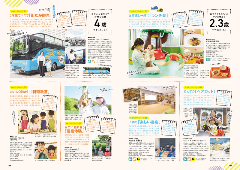 こどもを安心して遊ばせることができるビーチや渓流、緑いっぱいの低山ハイキング、見て触れて学べる動物園や水族館などの日帰りおでかけプランを筆頭に、ここ数年で新スポットが続々と誕生しているキャンプ&グランピング施設や、無料&格安で目いっぱい遊べる充実施設の大型公園も大特集。お宮参りや七五三にラン活など、お祝い行事や成長イベントのお役立ち情報もぎゅっと詰め込みました。ふだん使いに重宝する「お役立ちスポットカタログ」も2023年最新版にバージョンアップ!