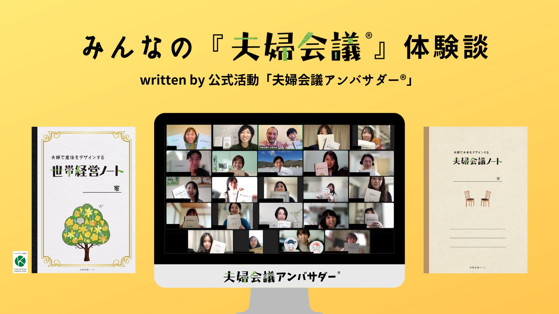 「夫婦会議アンバサダー」とは、世帯経営ノートや夫婦会議ノートなどの夫婦会議ツールを使って、実際に『夫婦会議』を行う中で感じた効果や魅力、楽しさを、ご自身の体験と共に積極的に発信いただく『夫婦会議』の公式活動です。