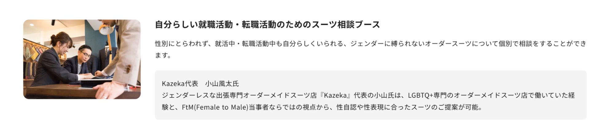 ・性別にとらわれないオーダーメイドスーツの相談ブース