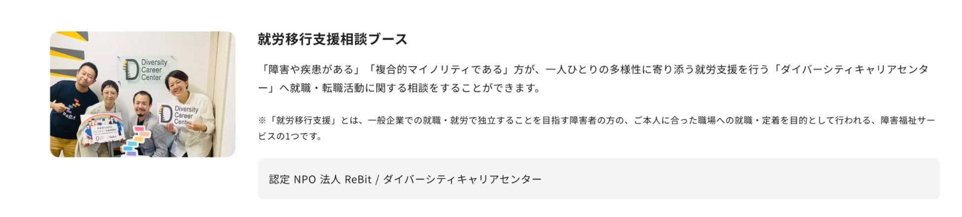 イベントには「就職・転職相談窓口」を設置。JobRainbowで就職・転職希望者のキャリア形成に伴走してきたキャリアアドバイザーが常駐します。