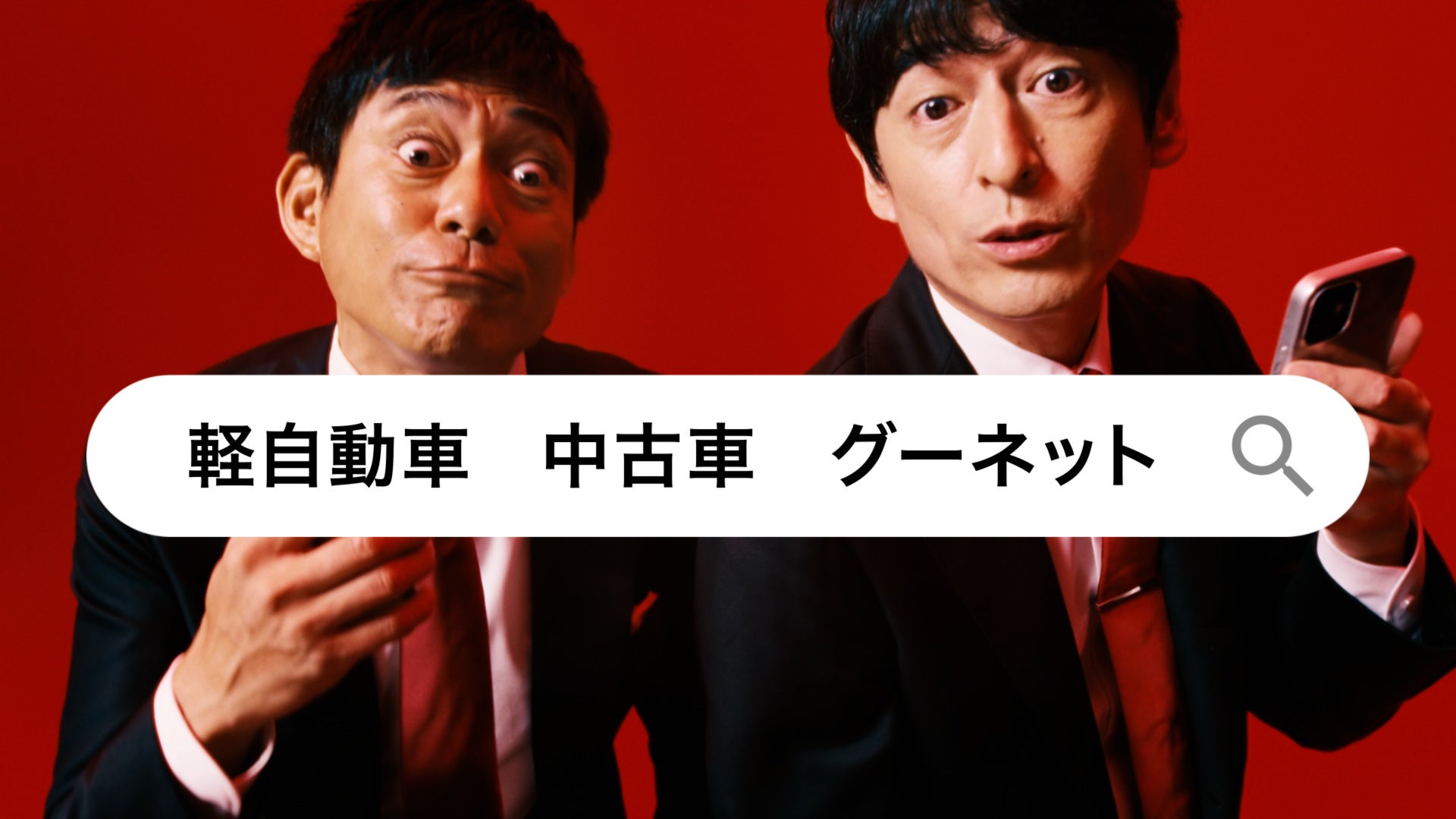 本CMでは、曲のリズムに合わせて検索ワードを歌い、実際に検索に挑戦する博多華丸・大吉さん。「車名・地域・グーネット」と繰り返しながら、歌って踊るコミカルな様子が印象的な動画になっております。