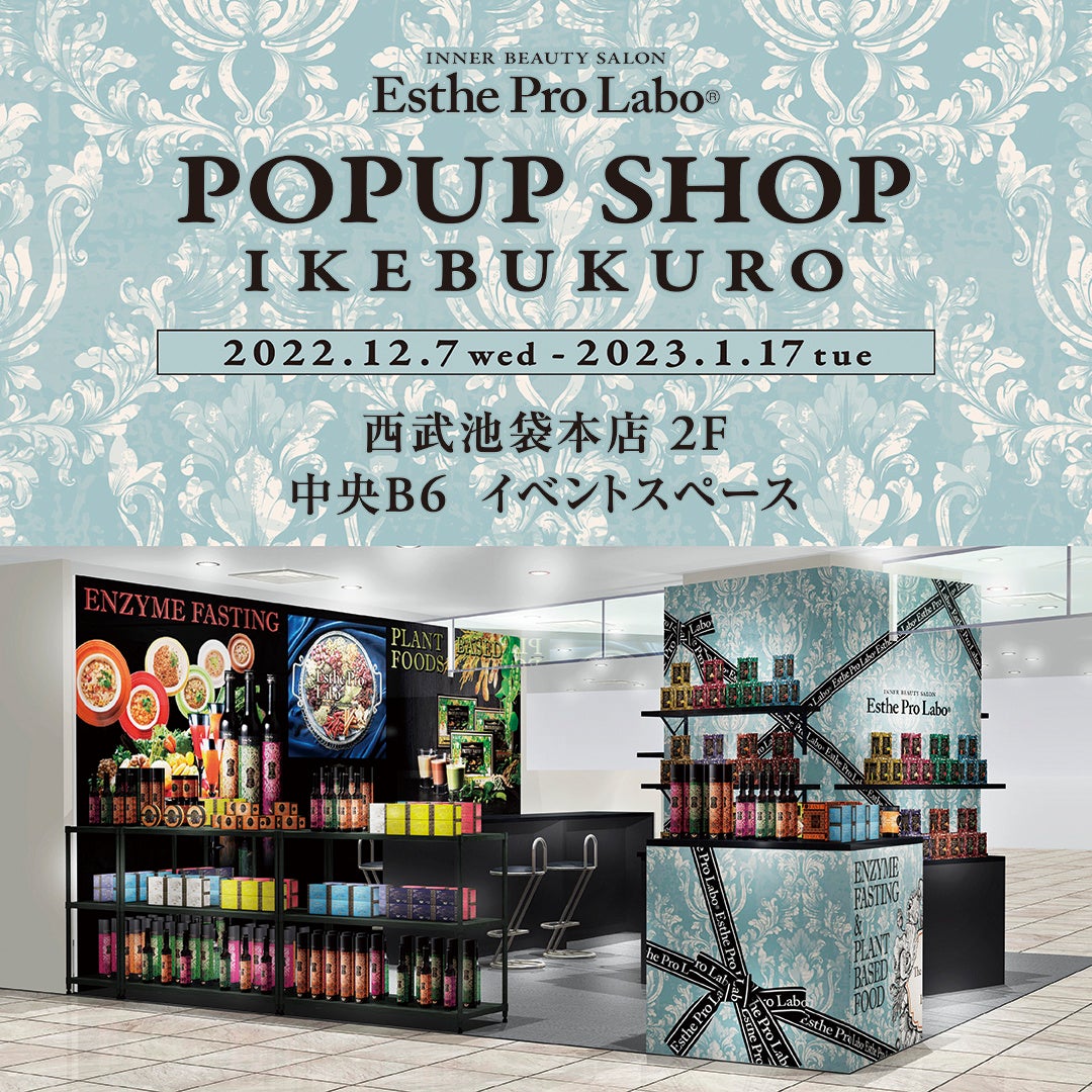 株式会社プロラボホールディングス(東京都港区/代表取締役 兼CEO 佐々木広行:以下 当社)は、若年層へもブランド認知を高める戦略の一環として、2022年12月7日(水)から2023年1月17日(火)の間、西武池袋本店2階の中央B6イベントスペースにてインナービューティサロンのポップアップショップ「エステプロ・ラボ西武池袋本店POPUP」を期間限定でオープンいたします。