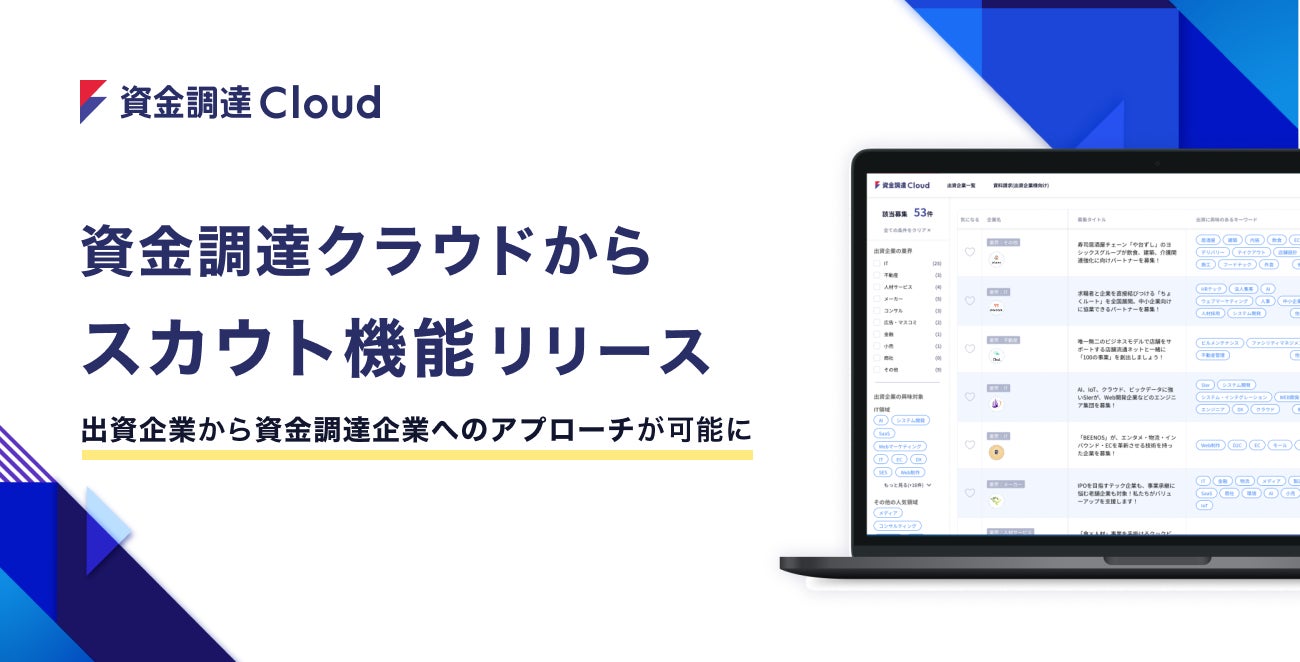 事業会社から資金調達ができる「資金調達クラウド」が『スカウト機能』をリリース