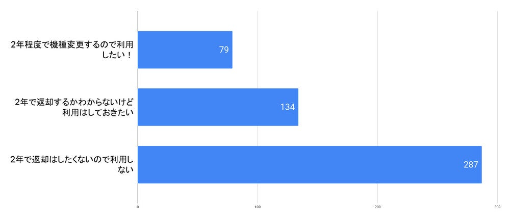 「購入を検討はするかもしれない」と回答している方も272名いるので、全体で約7割の方がスマホの値下げで購入を検討することがわかります。