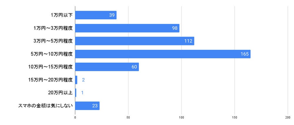 スマホの希望購入価格は、1万円〜10万程度の間が多いようです。
