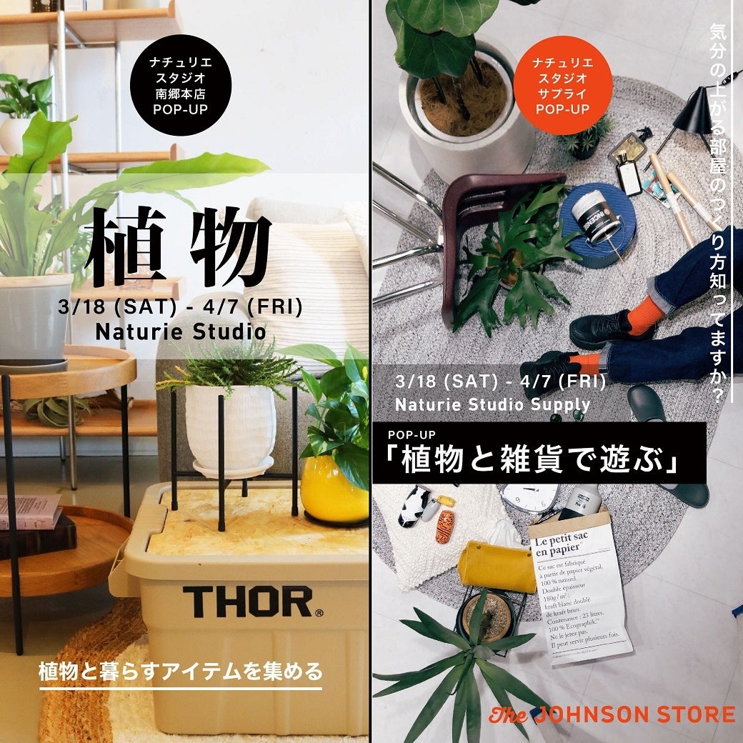 (株)ジョンソンホームズ インテリア飲食事業部(本社:北海道札幌市西区、代表:山地 章夫)が運営するインテリアショップ Naturie Studio/ Naturie Studio Supplyは2023年3月18日(土)~4月7日(金)の期間限定で、植物に特化したPOP-UP EVENT『植物 / 植物と雑貨で遊ぶ』を開催します。