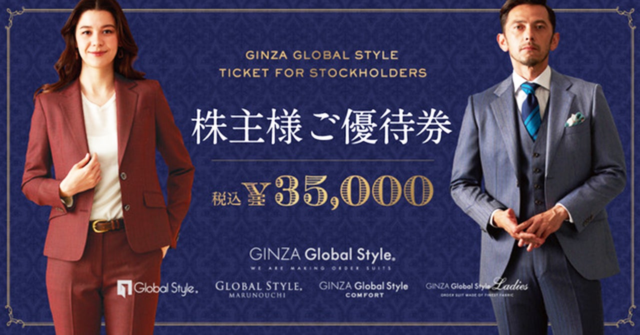 グローバルスタイル株式会社が運営するオーダースーツ専門店「グローバルスタイル」に店舗でのお買い物に使える【株主優待券】が新登場!